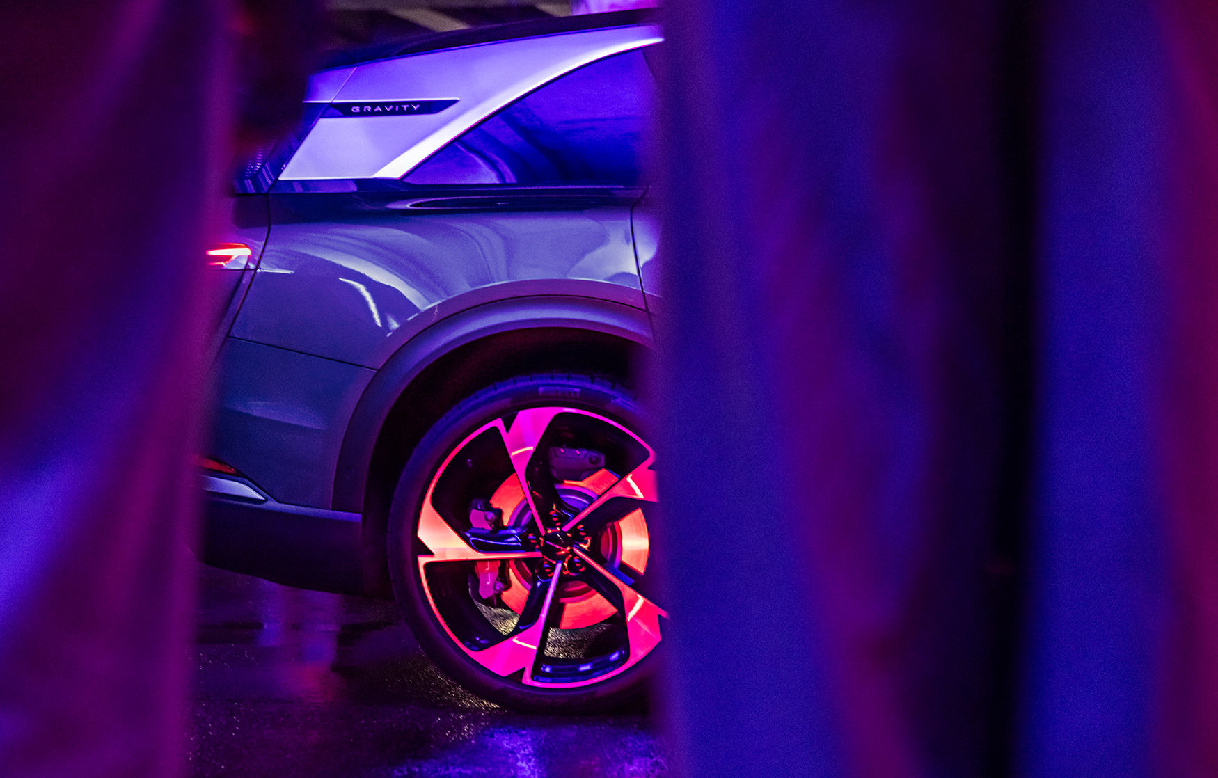 Lucid Gravity cruises through Miami with friends, its design and interior captured with camera moves that match the rhythm of the night.